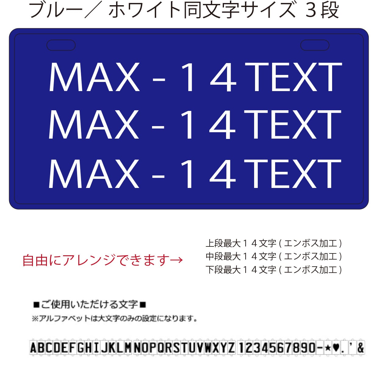 USプレート同文字サイズ3段 背景:ブルー 文字色:ホワイト