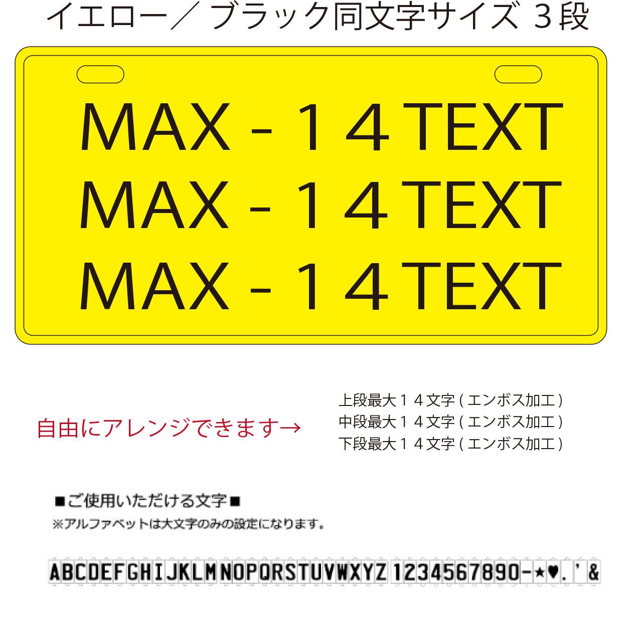USプレート同文字サイズ3段 背景:イエロー 文字色:ブラック