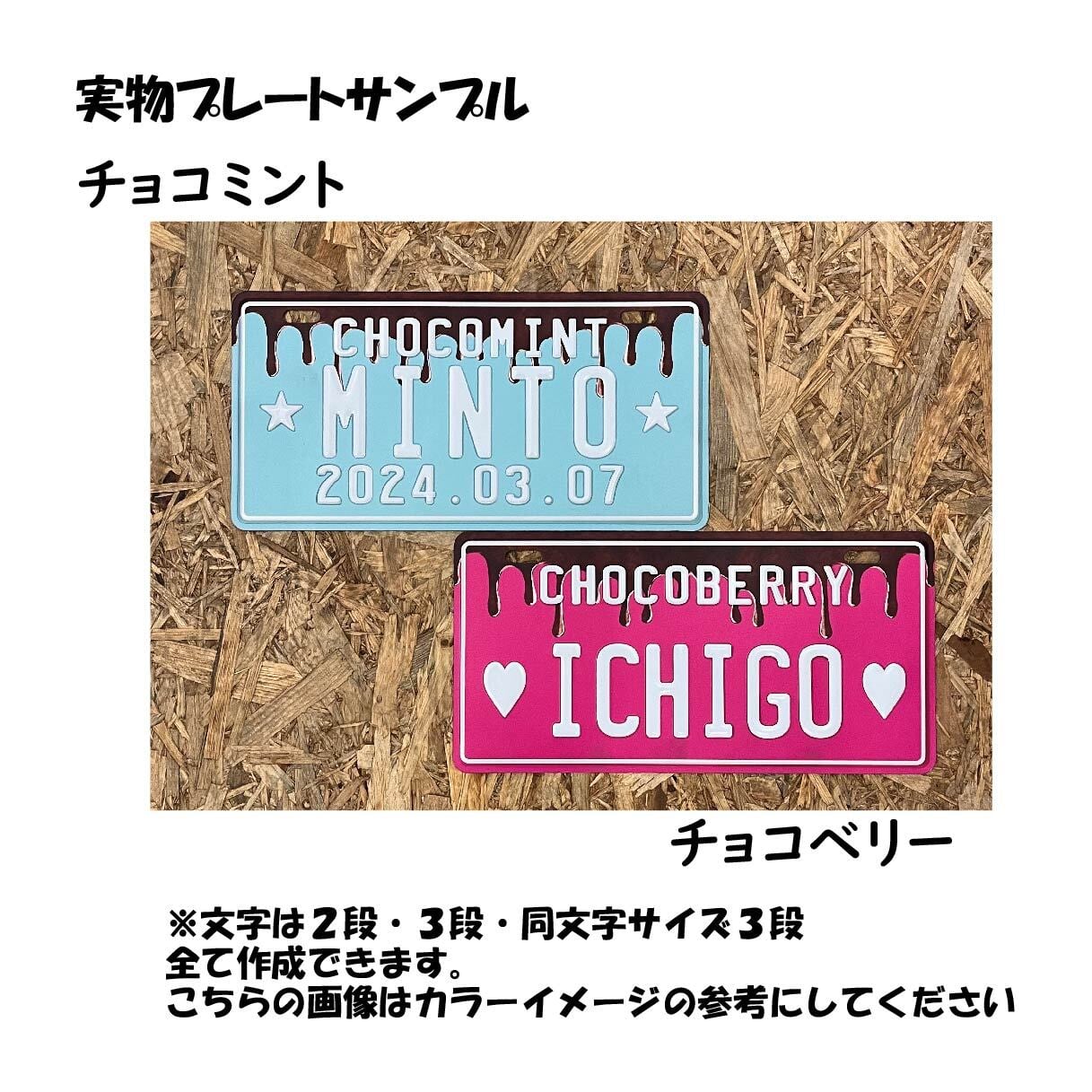 USプレート3段 背景:チョコ 文字色:ホワイト